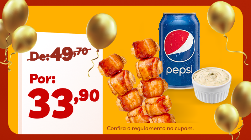 2 Espetinhos De Frango Com Bacon + 1 Molho + 1 Refri Lata