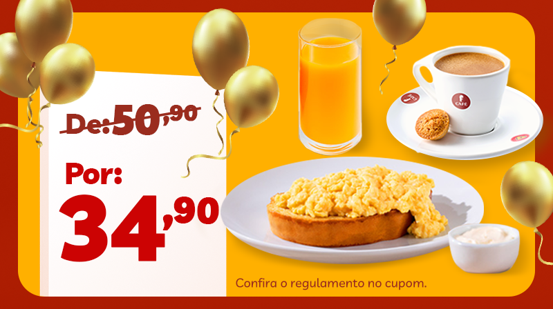 Pão Na Chapa + Ovo + Requeijão + Café + Suco 300 Ml
