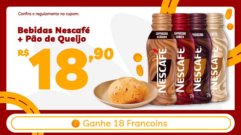 BEBIDAS NESCAFÉ + PÃO DE QUEIJO - POR R$18,90